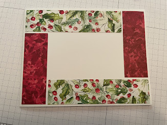 Glue right hand strip to the right edge of Crumb Cake card stock allowing about 1/8 inch border on top, bottom, and right edge